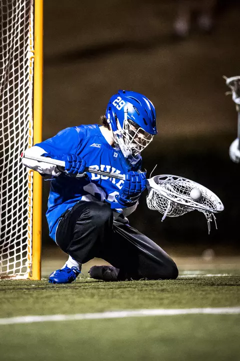 Sean Lowrie missed his rookie season to injury but didn't miss a beat when the time came for him to step on the field for real. In his first season on the field, Lowrie netted 12 goals and 11 assists in 18 games. As a sophomore, he scored 19 goals and added six assists to help Duke advance to the NCAA Championship game. In 2019, he was instrumental in Duke's victory over Notre Dame in the NCAA Quarterfinal. This past season the Roxbury Latin product lifted the Blue Devils over Richmond with the overtime winner. Overall, he played in 64 games and started 20. He scored 47 goals and 24 assists for 71 points. A three-time ACC Academic Honor Roll member, he will earn his Master of Management Studies degree from the Fuqua School of Business in May.